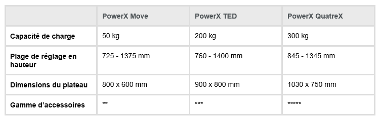 Gamme de postes de travail mobiles motorisés Treston PowerX