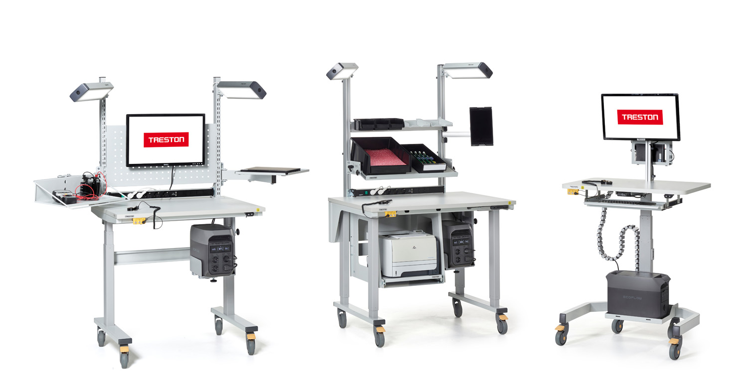 - Treston PowerX QuatreX: Un établi mobile motorisé, spécialement conçu pour les tâches de haute précision, notamment pour l’assemblage électronique.