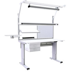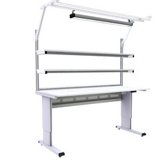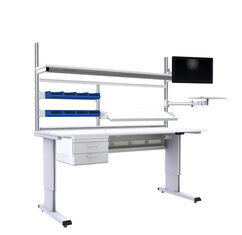 Les tables de travail Treston WB sont particulièrement adaptées à l’industrie de l’électronique. Le plan de travail peut être ajusté progressivement à l’aide d’un moteur électrique, d’une manivelle ou d’une clé Allen. Les modules à placer au-dessus des tables de travail ainsi que la large gamme d’accessoires et de compléments permettent de monter un poste de travail très ergonomique. Les tables de travail de cette famille de produits peuvent être positionnées parfaitement côte à côte, dos à dos ou contre un mur selon différentes configurations.